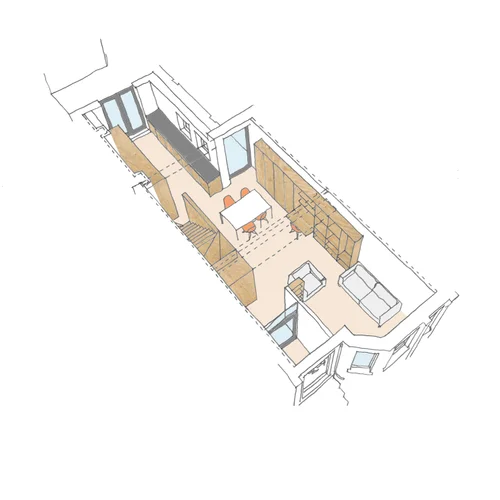 The project has seen the renovation of the cottage and Victorian parts of the building along with the demolition of a small section of infill construction to the rear. We have designed a new section in this area containing a kitchen, library and garden room and more effectively linking the parts of the house.