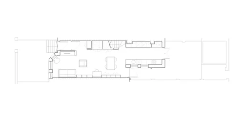 Although separated from the Victorian extension, the roof pitch of this new element is similar, echoing outlying low structures in the landscape and the slope of the land.